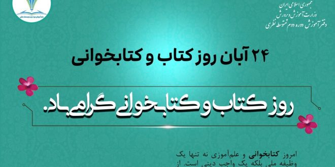 هفته کتاب و کتابخوانی یادآور این است که رشد و آگاهی از ورقخوردن ساده یک کتاب آغاز میشود. این هفته را فرصتی بدانیم تا دوباره با مطالعه جهانبینی خود را روشنتر و پویاتر کنیم و با ترویج آن نسلی دانا و آگاه تربیت کنیم. ─✾࿐༅————-༅࿐✾ ─ دبیرخانه راهبری کشوری توسعه شایستگیهای حرفهای معلمان دوره دوم متوسطه نظری( مستقر در استان …